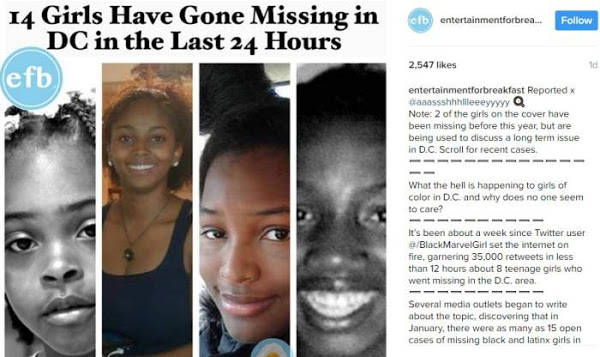 In early 2017, the Metropolitan Police Department (MPD) of Washington D.C. began to use Twitter to report and spread awareness of critical missing children cases. More than 200 cases have been shared on the department’s Twitter page, as well as notifications if one of the cases had been closed. Alana Gertz, a spokesperson for the MPD, explained, “If more people in the public are aware, then that’s more eyes on the road for us” (BBC). Since March 19th, the department has shared over twenty missing persons photos, half of whom are missing black and Latina girls from the DC area.